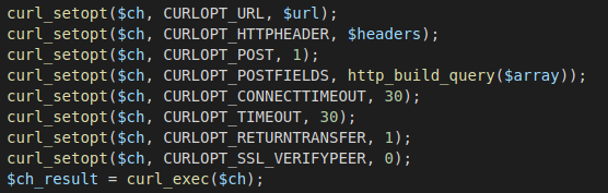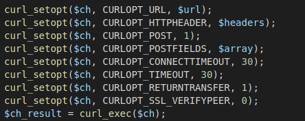 위와같이 curl을 set 했을경우 에러가 뜨는데 정보를 저장해놓은 배열을 curl코드에 넣을때 발생하는 문제일 수가 있다.