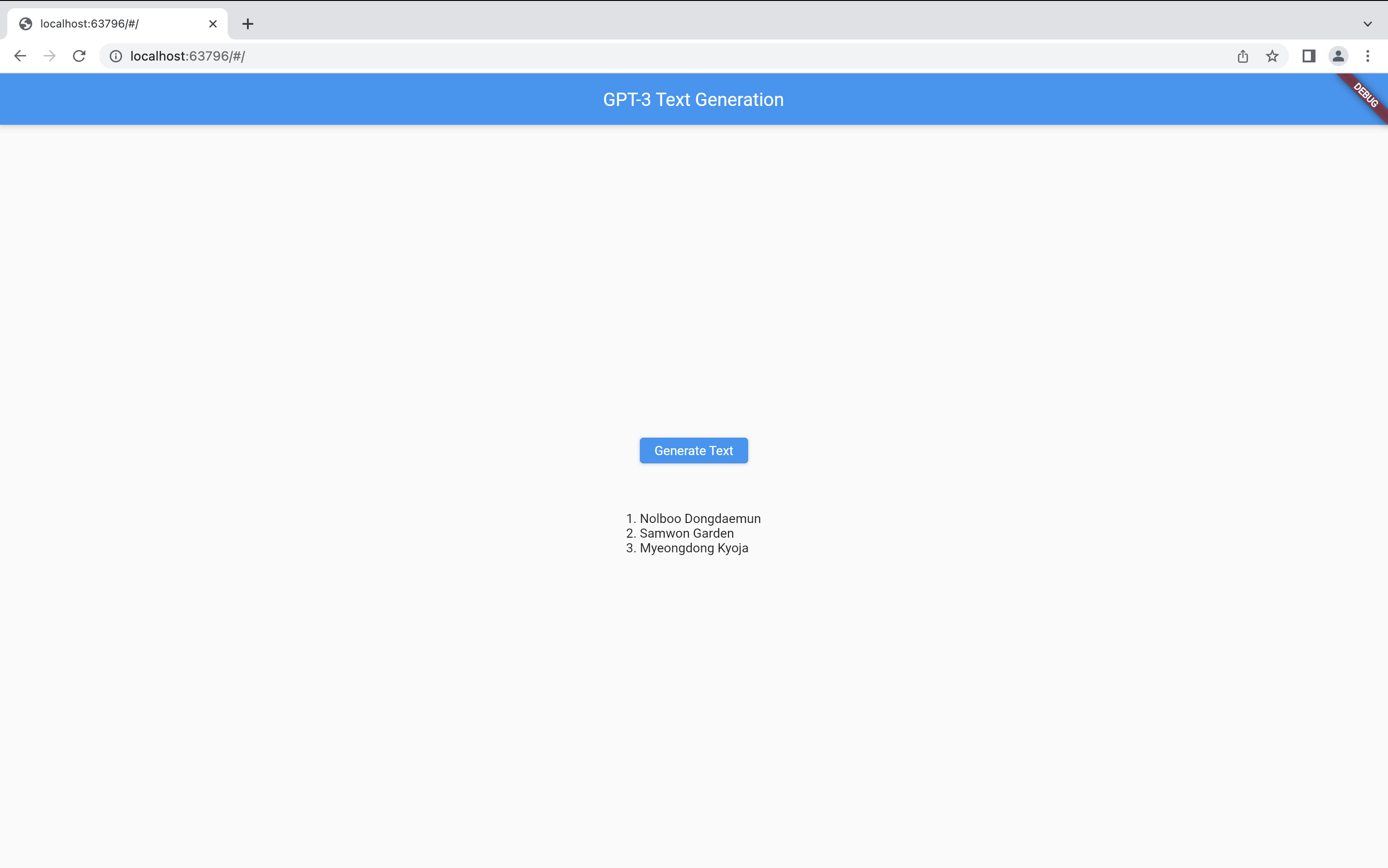 이제 Generate Text 버튼을 누르면 위 질문에 대한 대답이 아래에 출력되게 된다.