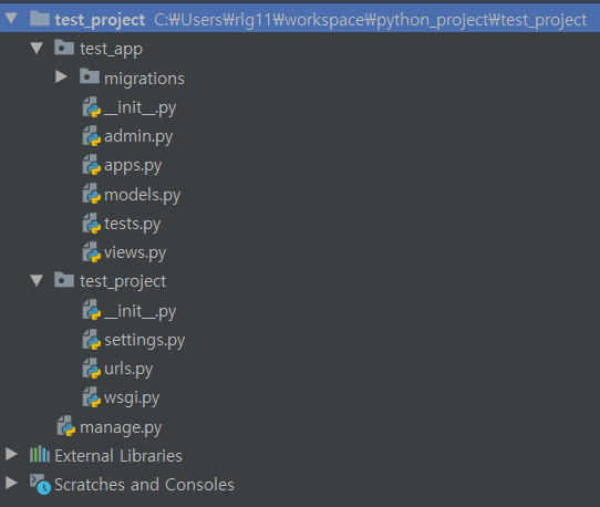 프로젝트 안에는 여러개의 앱이 들어갈 수 있는데 그중에 하나를 만들어 준것입니다.