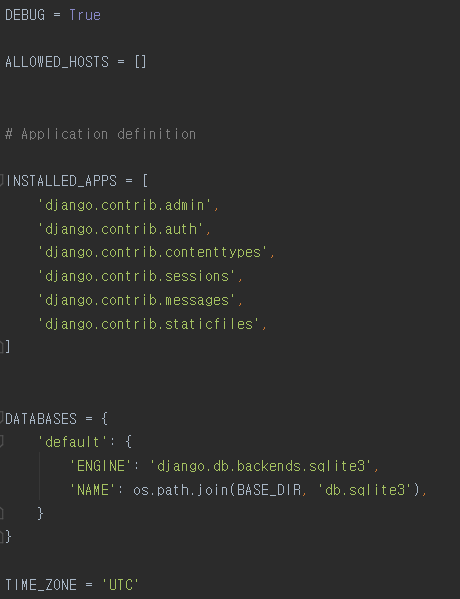 이제 setting.py 에 들어가 설정을 바꾸어 주겠습니다.