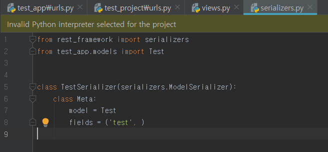 이어서 serializer_class에는 방금전에 만들어준 TestSerializer를 입력해줍니다.