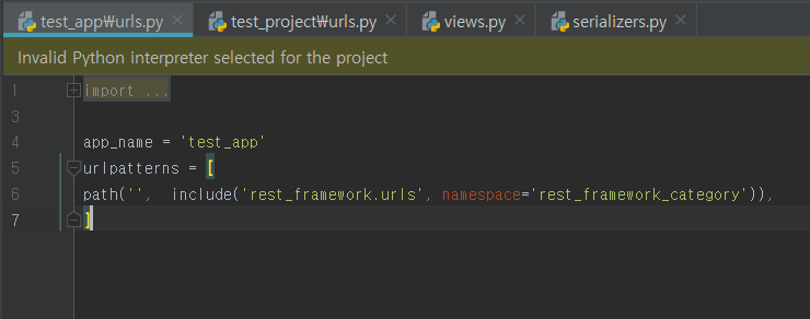 이제 앱경로의 urls.py를 열어서 test_app의 url을 작성해줍니다.