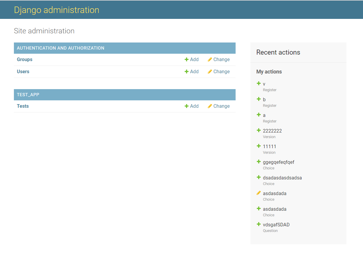 127.0.0.1:8000/admin 에 들어가서 Tests를 클릭합니다 이어서 add를 눌러 몇가지 데이터를 추가해 보겠습니다.