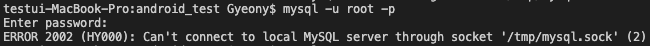 MySQL) ERROR 2002 (HY000): Can't connect to local MySQL server through socket '/tmp/mysql.sock' (2) 에러해결