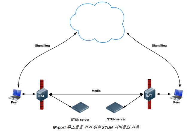 ->NAT가 UDP / TCP 오디오 / 비디오 스트림을 차단하지 않고 WebRTC는 STUN 응답을 통해 NAT를 통해 통신 할 수 있습니다.