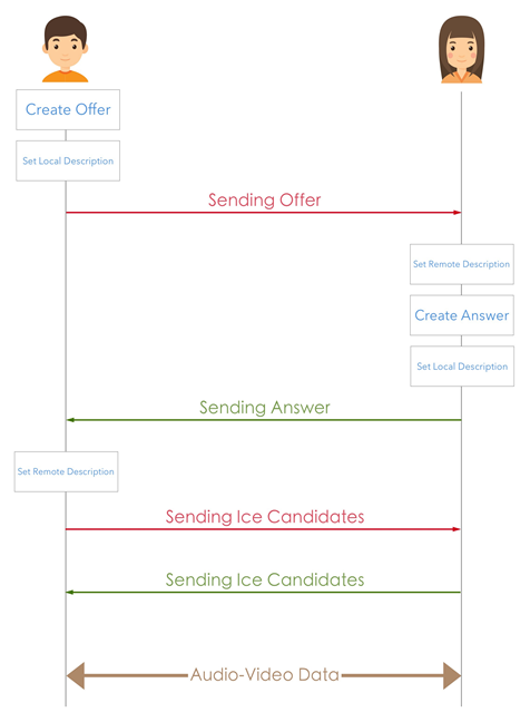 WebRTC가 P2P 통신을 처리하지만 피어가 통신 할 수 있도록 어떤 신호 메커니즘을 지정해야합니다.